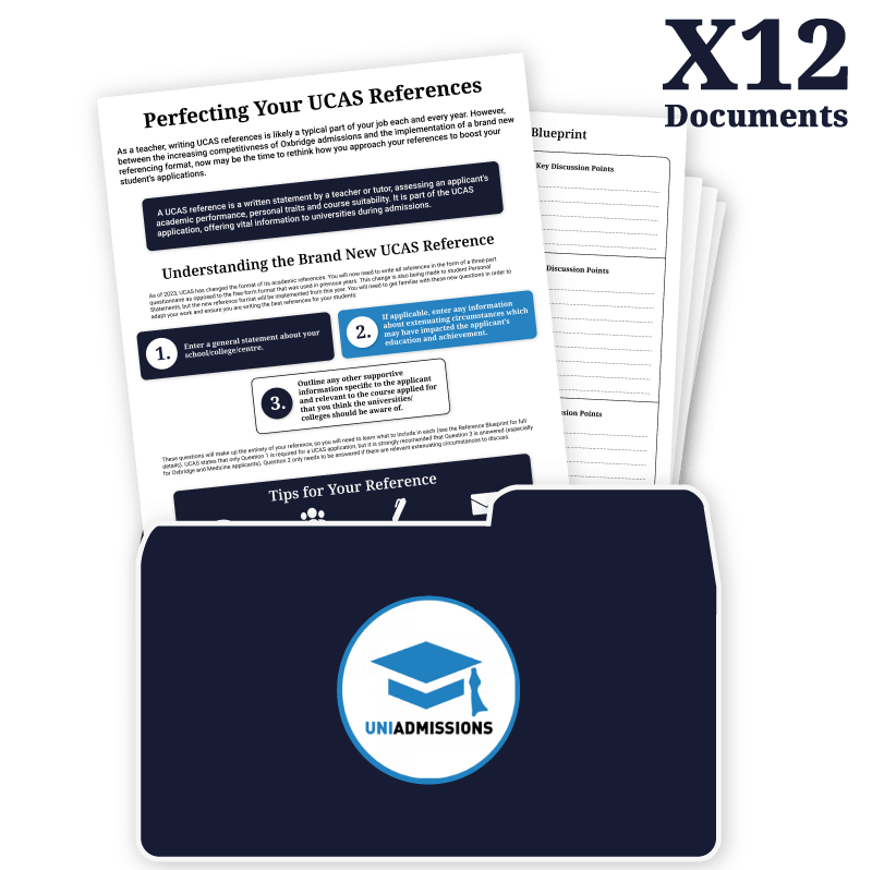 Gain access to our 12-Document Oxbridge Resource Pack, which includes our Reference Blueprint, to help you perfect your UCAS references, and many more helpful tools. The free pack includes handouts, templates, lesson plans and much more to help you prepare your students for each step of the application process. Fill out the form below and gain instant access.