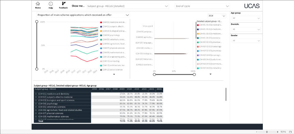 We looked at official UCAS 2024 statistics and data published directly by universities. UCAS provides offer rates for different subject groups across the UK, which helps us see which areas are the hardest to get into based on how many applicants receive an offer.