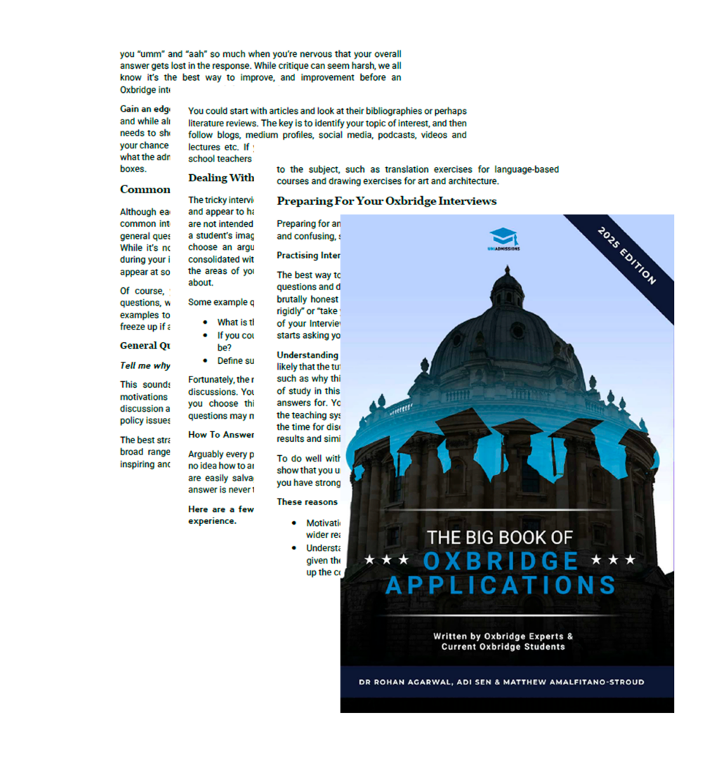 Wherever you are in your Oxbridge journey—just getting started or looking to sharpen your approach—The Big Book of Oxbridge Applications is your essential companion. The dedicated interview chapter takes the mystery out of the process, helping you walk into your interview with clarity and confidence.