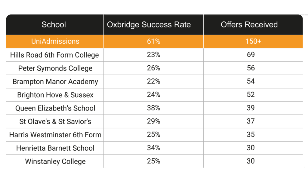 We get more students into Oxbridge each year than the top 10 schools for Oxbridge admissions.