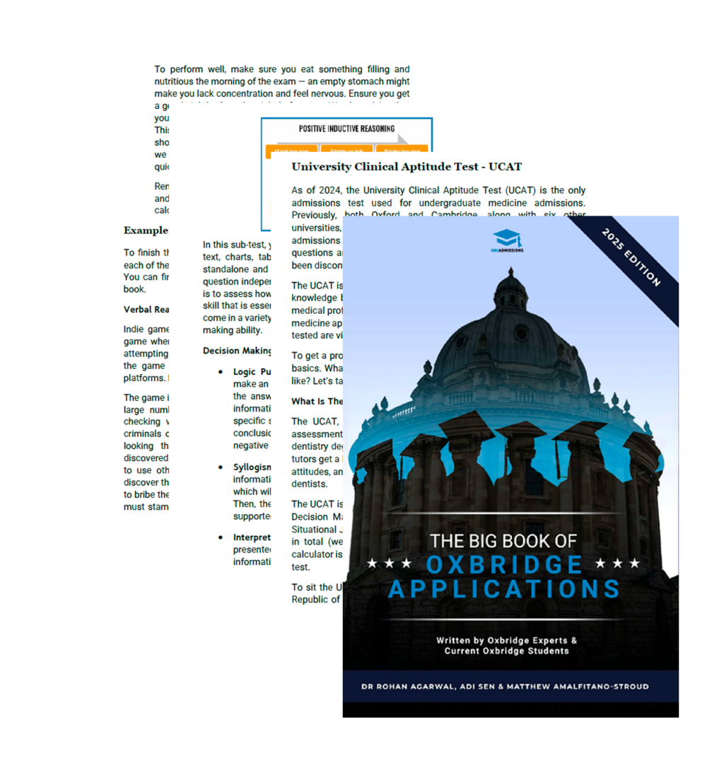 The Big Book of Oxbridge Applications takes the guesswork out of UCAT prep. The UCAT section of this free book gives you everything you need to understand the test and approach it with confidence. Inside, you’ll find: